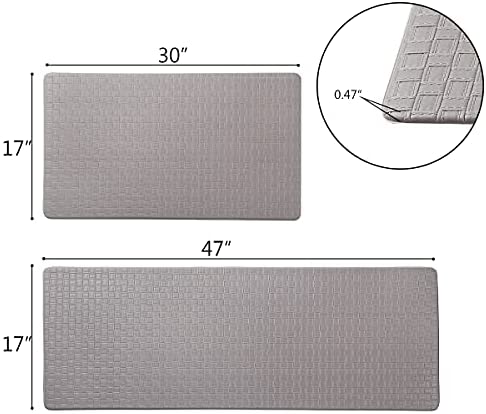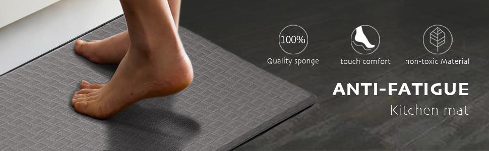 - COMFORT FOOT ā The soft kitchen mat set provides thick, cushioned support to help improve leg circulation. The thickness of the kitchen mat is 0.47 inches to ensure that you can stand comfortably while kitchens and working.
